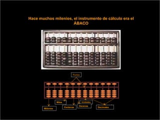 El documento resume la evolución de los dispositivos de cálculo y almacenamiento de datos a través de los siglos, desde el ábaco hasta los primeros ordenadores mecánicos y electrónicos como el ENIAC y el IBM 650, el desarrollo de soportes como las tarjetas perforadas, cintas y discos, y la creación de Internet y la World Wide Web, lo que ha llevado a una espectacular miniaturización y aumento de la capacidad de almacenamiento en pocas décadas.