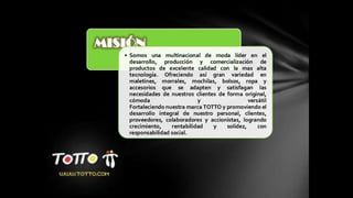 La multinacional colombiana Totto comenzó en 1987 cuando Yonatan Bursztyn compró una fábrica de cuero en quiebra. Desde entonces, Totto se ha convertido en una marca líder en maletines, mochilas y ropa en Latinoamérica, con más de 600 tiendas a nivel global. Totto ha patrocinado deportistas olímpicos y expediciones, y ha lanzado colecciones con Disney y Renault. Actualmente, Totto supera a marcas internacionales como Adidas y los consumidores colombianos están dispuestos a