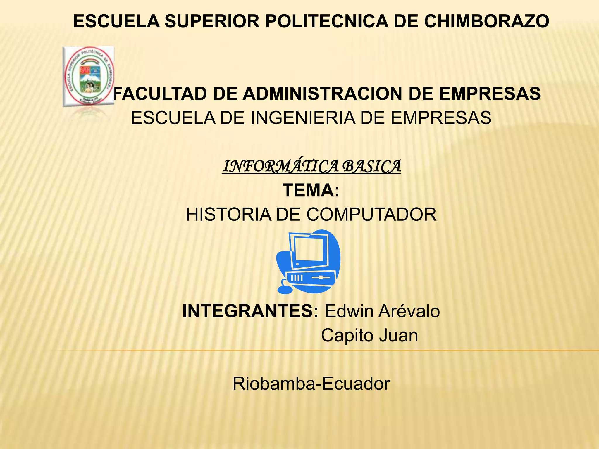 El documento resume brevemente la historia del desarrollo de la computadora desde el siglo XVII hasta el presente. Destaca las contribuciones de al-Khwarizmi con los algoritmos, la primera calculadora mecánica de Schickard, la primera máquina programable Z3 de Zuse, el surgimiento de los virus informáticos en 1972, el lanzamiento de Windows 95 y el lenguaje de programación C# en 2001. Concluye mencionando algunos hitos recientes como Debian GNU/Linux 5.0, KDE 4.2 y el lanzamiento de Mac OS X Snow Leopard