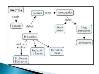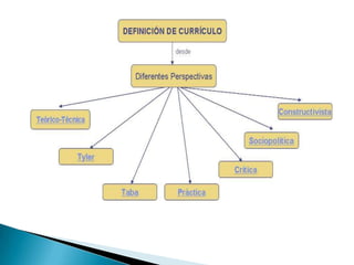 El documento discute la evolución del concepto de currículo a través del tiempo. Explica que originalmente se refería a los planes de estudio y contenidos enseñados en las escuelas, pero que más recientemente ha incorporado el significado de "curso de vida" para incluir todas las experiencias de los estudiantes dentro y fuera del aula. También describe cómo autores estadounidenses del siglo XX influyeron en la evolución del currículo al enfocarse en las diferencias individuales, el contexto social y la necesidad de evaluación y retroalimentación constant
