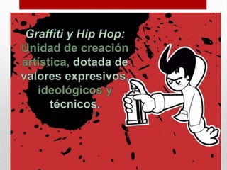 El graffiti tiene sus raíces en la palabra griega 'graphein' y se desarrolló en Nueva York durante los años 60, influenciado por la cultura hip-hop. A lo largo de las décadas, este arte urbano ha evolucionado en estilos y popularidad, destacando personajes como Taki 183 y movimientos que han revitalizado la cultura del graffiti en diferentes épocas. Desde 1990, el graffiti ha trascendido Nueva York, convirtiéndose en un fenómeno global en las principales ciudades del mundo.