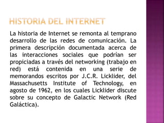 El documento presenta varios riesgos asociados al uso de Internet, incluyendo acceso a información poco confiable o inapropiada, comunicaciones ofensivas, pérdida de privacidad, estafas, virus y adicción al uso excesivo de Internet. Se mencionan también riesgos relacionados con actividades económicas en línea y limitaciones tecnológicas.