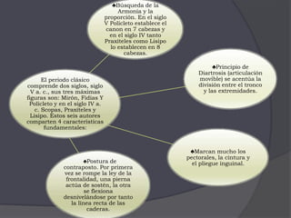 Este documento resume la historia del modelado y la escultura desde la prehistoria hasta el Renacimiento. Comienza describiendo el modelado como la creación manual de imágenes tridimensionales y luego resume brevemente los principales desarrollos en la escultura de civilizaciones como Egipto, Grecia, Roma, y los períodos románico, gótico y renacentista, destacando los principales artistas y obras representativas de cada época.