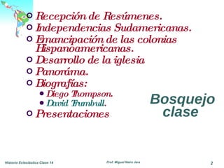 El documento resume la historia del cristianismo en Latinoamérica desde la época colonial hasta la independencia de las colonias hispanas a principios del siglo XIX. Explica que las colonias se independizaron debido al descontento de los criollos con la administración española y el vacío de poder en España tras la invasión napoleónica. Luego de la independencia, las nuevas repúblicas enfrentaron inestabilidad política y dependencia económica de potencias europeas y Estados Unidos.