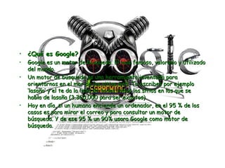 Google es el motor de búsqueda más famoso y utilizado del mundo. Fue creado en 1998 por Larry Page y Sergey Brin, dos estudiantes de la Universidad de Stanford. Desarrollaron un nuevo sistema llamado PageRank que ordenaba los resultados de búsqueda en función del número de enlaces apuntando a cada página web, lo que revolucionó la forma en que funcionaban los motores de búsqueda. Google se ha convertido en la puerta de entrada a Internet para millones de personas y ofrece una amplia gama de servicios como Gmail, Google Maps y Google Chrome.