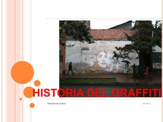 El graffiti ha existido desde la antigua Roma, donde se escribían consignas políticas y declaraciones de amor en muros y columnas. En el siglo XIX apareció un mensaje escrito con sangre relacionado con Jack el Destripador. En la Segunda Guerra Mundial, soldados estadounidenses encontraron repetidamente el graffiti "Kilroy was here". En los 60's surgieron los primeros tags y estilos como el wild style. En los 70's aparecieron las piezas maestras, los crews y el estilo de guerra. En los 80