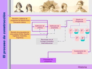 El documento describe los cambios realizados en la reforma de los programas de estudio de historia de primaria en México, incluyendo: 1) La articulación de los contenidos entre niveles educativos con base en competencias y ámbitos de análisis; 2) La actualización de los contenidos temáticos e incorporación de problemáticas actuales; 3) La graduación de las nociones de tiempo y espacio históricos de acuerdo con el grado escolar.