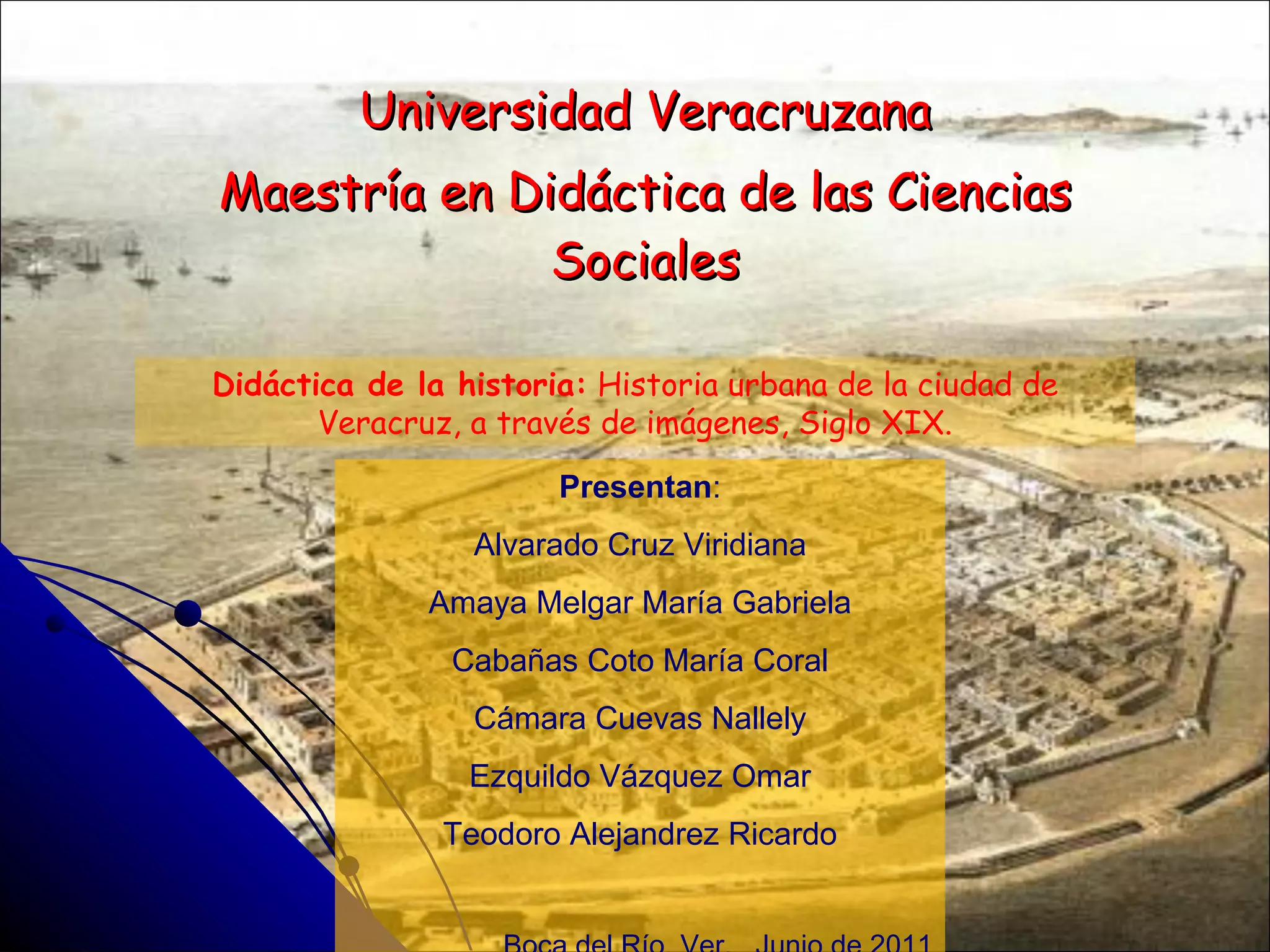 Este documento describe la arquitectura de la ciudad de Veracruz durante el siglo XIX en México. Explica que este periodo se puede dividir en tres etapas: la primera representa la continuidad de las instituciones coloniales hasta 1850; la segunda de 1850 a 1885 es de rechazo a lo colonial; y la última de 1885 al fin del porfiriato es de estilos neoclásico y ecléctico. También describe cómo el Porfiriato trajo modernización urbana y destruyó edificios coloniales, y cómo se construyeron escuelas