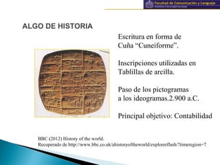 Este documento proporciona una breve historia de la información y documentación, desde las primeras civilizaciones hasta la imprenta y el desarrollo de internet. Explica los conceptos clave de documento, información y conocimiento, y describe los diferentes tipos de fuentes documentales y sistemas para organizar el conocimiento.