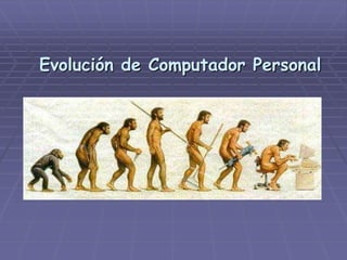 El documento resume la evolución de los computadores personales desde el 3000 AC hasta la actualidad. Comenzó con métodos primitivos de cálculo como el ábaco y pasó por importantes inventos como la máquina analítica de Charles Babbage y la introducción del transistor. Los computadores han pasado por seis generaciones, desde los primeros ordenadores electromecánicos hasta los computadores personales modernos basados en Internet.