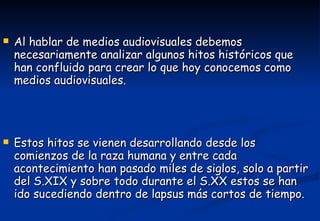 Este documento resume los principales hitos en la historia de la comunicación como el lenguaje hablado, la escritura, la imprenta, el telégrafo, el teléfono y el móvil, la fotografía, la televisión, la radio y el cine. También describe brevemente el origen e importancia de Internet.