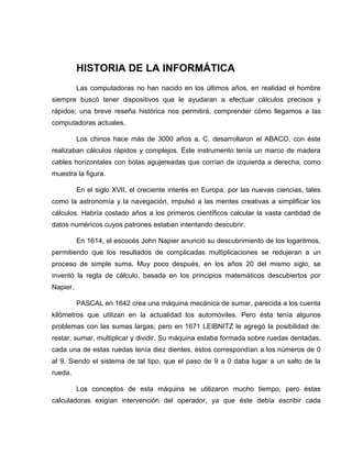 La historia de la computación comenzó hace miles de años con dispositivos simples como el ábaco chino. A lo largo de los siglos, inventores como Pascal, Leibniz, Babbage y Turing desarrollaron máquinas cada vez más avanzadas para realizar cálculos, dando origen a las primeras calculadoras mecánicas y electrónicas. En la década de 1940, surgieron las primeras computadoras programables como la ENIAC, dando inicio a la era de la computación moderna. Desde entonces, los continuos avances en circuit