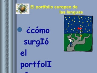 El documento describe el origen y propósito del Portfolio Europeo de Lenguas. Surge después de la Segunda Guerra Mundial cuando líderes europeos crearon el Consejo de Europa para fomentar la comprensión mutua. Más tarde, se desarrolló el Marco Común Europeo de Referencia para las Lenguas y el Portfolio Europeo de Lenguas para ayudar a los estudiantes a evaluar y documentar su progreso en múltiples idiomas. El portfolio consta de tres secciones - un pasaporte de idiomas, una biografía lingüíst
