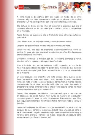 La historia cuenta la historia de un maestro anciano que recibe la visita de uno de sus antiguos alumnos, el padre del narrador, después de 40 años. El maestro recuerda con afecto a su antiguo alumno y se alegra de recibir su visita, aunque teme que sea el último, debido a su avanzada edad. El encuentro despierta recuerdos y emociones entre ambos.