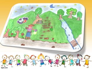 Este documento presenta varias narraciones legendarias recopiladas por estudiantes de 4o grado en el corregimiento de El Rincón. Las narraciones incluyen historias sobre encuentros con el duende, un cortejo fúnebre fantasmal y una mujer que ahogó a sus hijos y ahora llora eternamente buscándolos. Los estudiantes recopilaron, ilustraron y digitalizaron estas leyendas como parte de un proceso de investigación sobre el legado cultural de su región.
