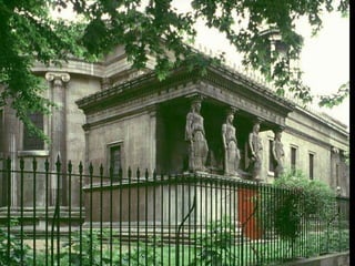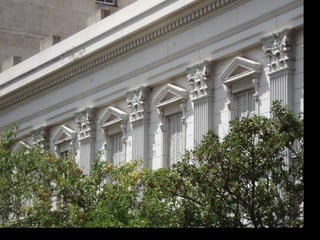 El documento describe la evolución de los estilos arquitectónicos entre los siglos XVIII y XX, desde el Neoclasicismo hasta el Eclecticismo. Resalta el impacto de la Revolución Industrial y la influencia de los descubrimientos arqueológicos en Grecia y Roma que llevaron a retomar modelos clásicos. Explica cómo diferentes corrientes como el Neogótico y el Historicismo rescataron elementos del pasado y se expandieron a nivel global.