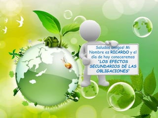 Este documento resume los efectos secundarios de las obligaciones civiles en Venezuela. Explica las acciones protectoras del acreedor como las acciones ejecutorias, conservatorias y cautelares. Luego describe las acciones oblicua, Paulina y de simulación que permiten al acreedor proteger su crédito cuando el deudor no cumple con su obligación o intenta disminuir fraudulentamente su patrimonio. Finalmente, resume las condiciones necesarias para cada una de estas acciones protectoras del acreedor.