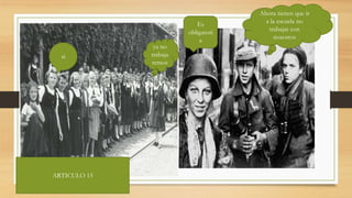 Este documento trata sobre varios artículos relacionados con la educación obligatoria y la creación de escuelas. Se establece que la educación primaria será obligatoria para niños y que el ejecutivo establecerá escuelas especiales para aquellos con necesidades educativas especiales. También habla sobre la creación de una Escuela Nacional de Altos Estudios para mejorar la educación superior y formar profesores de escuelas secundarias y profesionales.