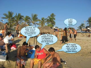 Este resumen describe una conversación entre varios amigos mientras están de viaje en la playa. Se quejan de los problemas mecánicos con sus autos, discuten cómo pagarán por su estancia, y planean sus actividades para la noche incluyendo ir a la playa y a un hotel.