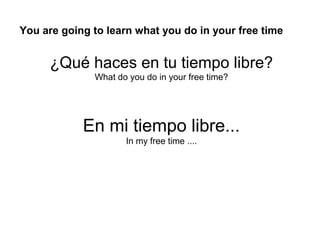 El documento describe las actividades que una persona realiza durante su tiempo libre, incluyendo ver televisión, escuchar música, tocar la guitarra, leer libros, dibujar, navegar por Internet, jugar en la computadora, chatear en MSN, practicar deportes, salir con amigos y ir al cine.