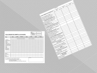 Este documento describe las hojas de control como una herramienta para analizar y verificar distintos aspectos de un proceso industrial u otro tipo de proceso para garantizar que nada salga mal. Las hojas de control se pueden crear para lo que se está elaborando y también para recibir opiniones y sugerencias de la gente. A continuación, proporciona ejemplos de hojas de control.