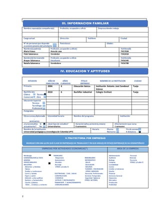 Este documento es una hoja de vida de David Santiago Salamanca Viasus, quien está solicitando el cargo de mecánico industrial. La hoja de vida proporciona información personal, educativa y laboral de David, incluyendo detalles sobre sus estudios, experiencia laboral previa como mecánico industrial, y referencias personales.