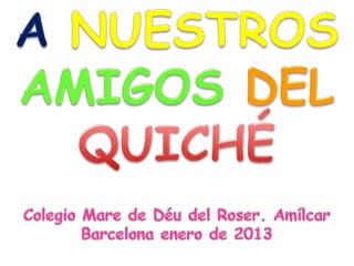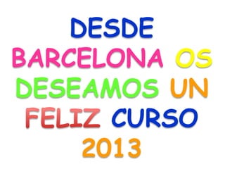 Los estudiantes de una escuela en Barcelona envían un mensaje de saludo y buenos deseos a los estudiantes de una escuela en Guatemala para el nuevo año escolar 2013, expresando que a pesar de la distancia se sienten cercanos y queriendo desearles lo mejor.