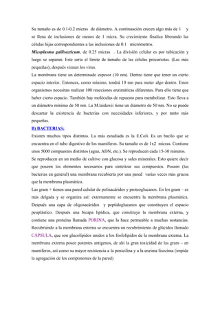 2) Las micoplasmas son las células procariotas más pequeñas, de 0.1-0.2 micras, y carecen de pared celular.