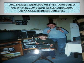 Este documento celebra un cumpleaños familiar y recuerda los buenos momentos pasados juntos, incluyendo las fiestas y bromas. También menciona a varios familiares y amigos que son importantes y han estado presentes en momentos especiales. Desea que la celebración continúe reforzando el amor entre hermanos.