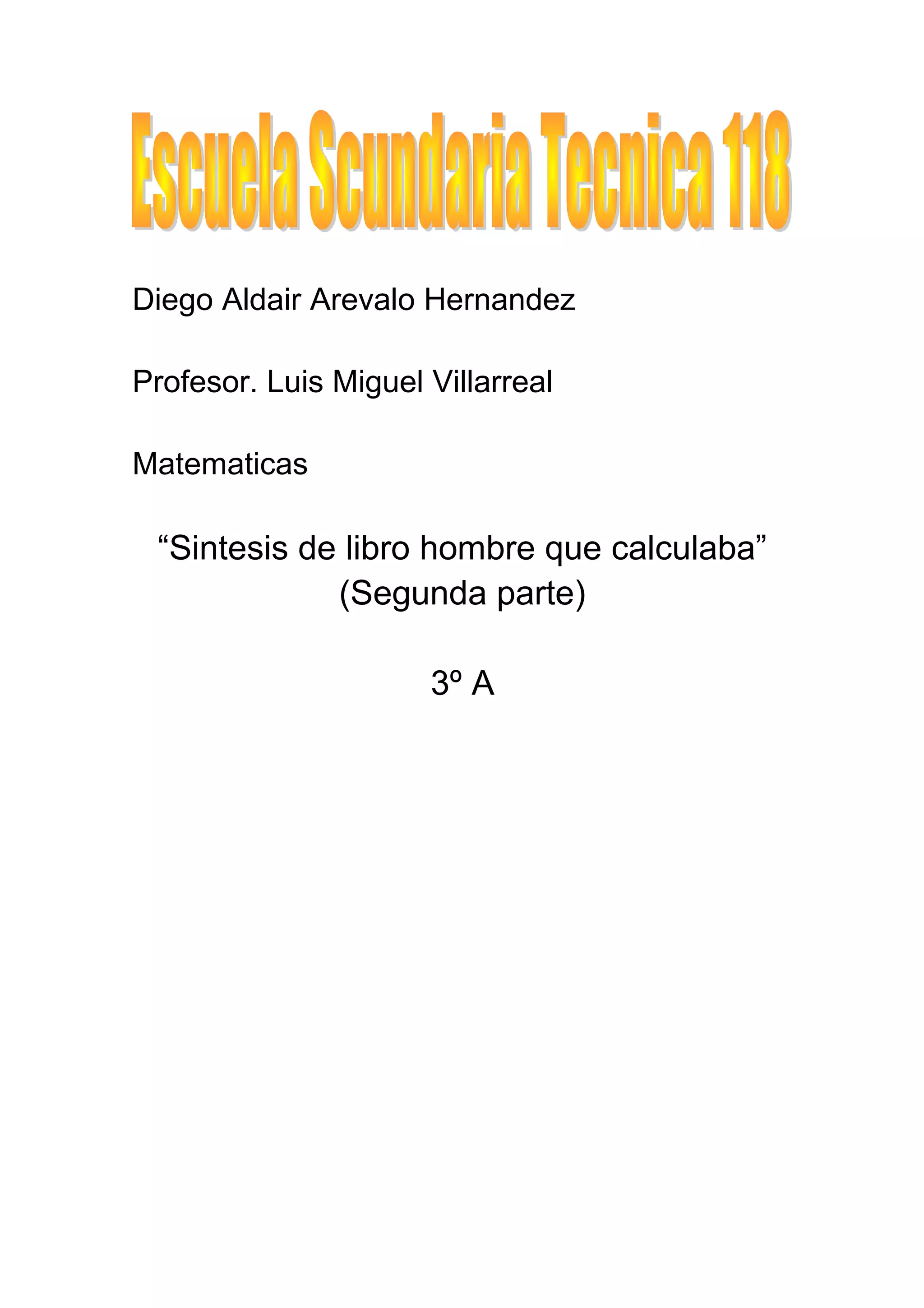 Este resumen describe un documento sobre un libro llamado "El hombre que calculaba". Brevemente resume que el documento habla sobre los últimos 14 capítulos del libro, en los que Beremiz gana un torneo contra 7 oponentes. Aunque se le ofrecen premios, lo único que Beremiz desea es casarse. Al final, Beremiz es bautizado por un obispo experto en la geometría de Euclides.