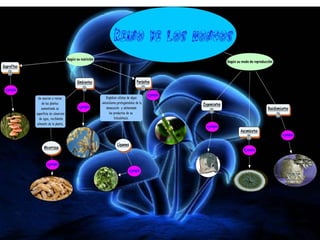 Este documento describe las características biológicas y estructurales de los hongos. Explica que los hongos tienen células con paredes de quitina y membranas de ergosterol. También se reproducen de forma sexual y asexual, ya sea por gemación, esporulación o fragmentación. Además, incluye información sobre hongos patógenos como Candida y Aspergillus.