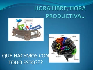 Este documento propone actividades para estudiantes de primer año utilizando las redes sociales. Busca equipar a los estudiantes con herramientas para promocionar el primer año y promover la integración entre estudiantes a través de grupos en Facebook según intereses comunes. Algunas actividades propuestas incluyen compartir textos sobre técnicas de estudio y navegación responsable, dividir a los estudiantes en grupos para verificar información falsa sobre sus intereses, y discutir lo público vs privado en las redes sociales.