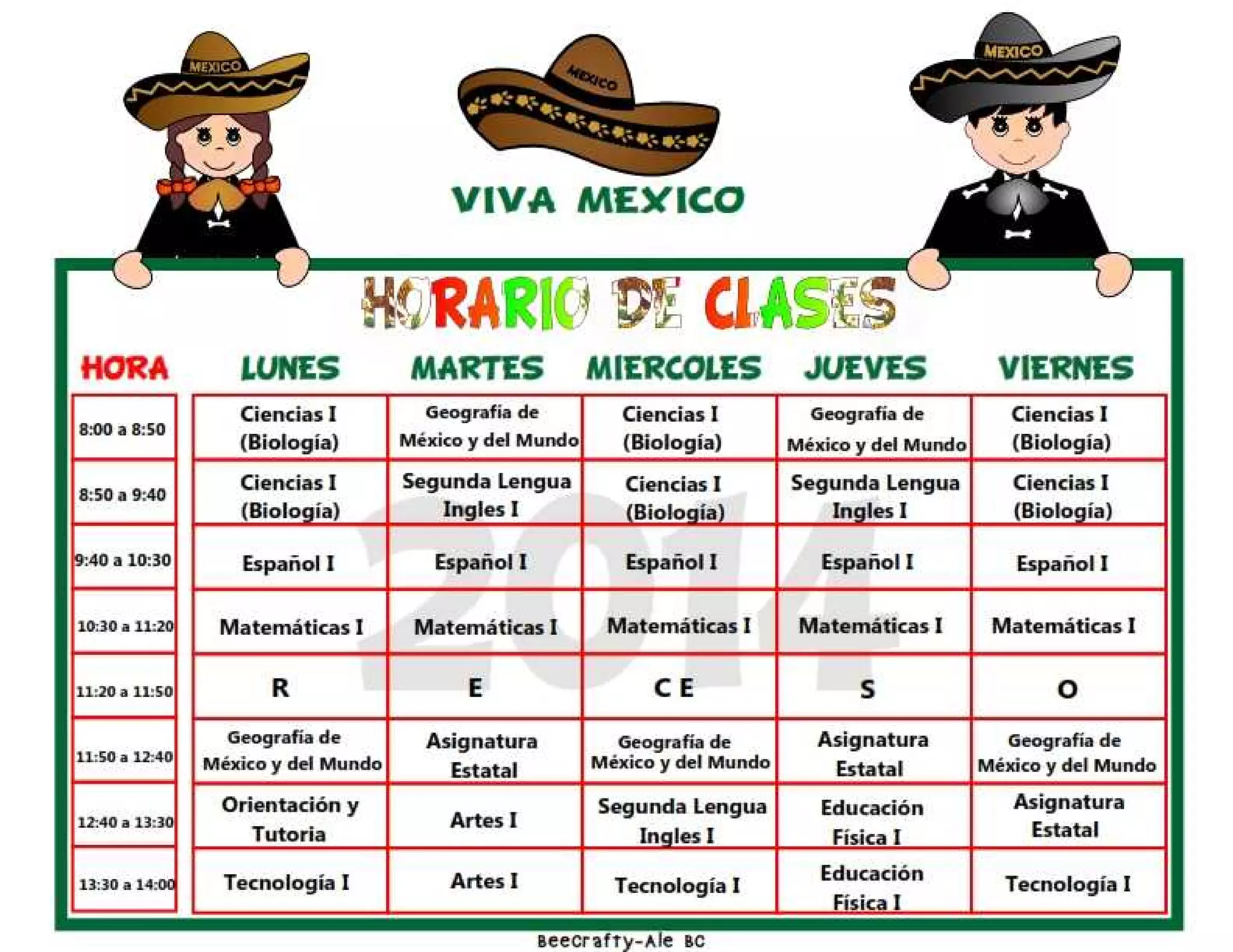 Horario de Clase 1er. Grado.