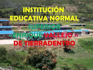 La institución educativa normal superior "Enrique Vallejo" de Tierradentro busca formar maestros de alta calidad ética y pedagógica para educar a los niños y jóvenes de manera integral y respetuosa de la diversidad, promoviendo valores como la solidaridad, el servicio a los demás y el desarrollo humano de las nuevas generaciones.