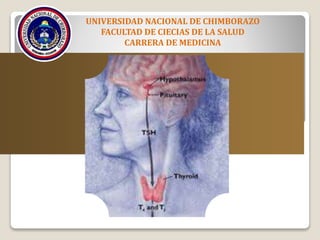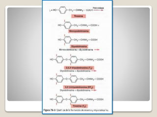 El documento describe la anatomía, fisiología y función de la glándula tiroides. En resumen:
