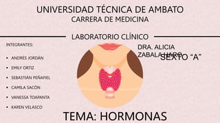 Este documento resume información sobre las hormonas tiroideas, incluyendo la estructura y función de la glándula tiroides, las hormonas que produce (T3 y T4), su regulación, transporte, metabolismo y efectos. También describe alteraciones de la función tiroidea como el hipotiroidismo y hipertiroidismo primarios y centrales, así como cáncer de tiroides y resistencia a las hormonas tiroideas.