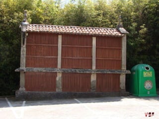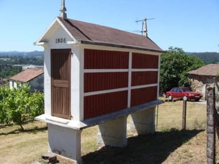 Los horreos de la Estrada son estructuras tradicionales de almacenamiento de grano en Galicia, España. Están construidos sobre pilares de piedra para proteger los cultivos de la humedad y los animales. Victor Sterling Franco escribió sobre la importancia cultural de preservar estas construcciones únicas del patrimonio arquitectónico gallego.