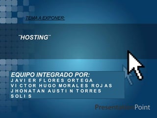 Este documento presenta una introducción al concepto de "hosting" o alojamiento web. Explica que el hosting es el servicio que almacena y hace accesible la información de un sitio web a través de Internet. Luego describe los principales tipos de hosting, como el alojamiento gratuito, compartido, de imágenes, reseller, VPS, dedicado y en la nube. Finalmente, cubre formas de obtener hosting a través de servicios de pago o gratuitos, así como consideraciones sobre dominios y costos de hosting en México.