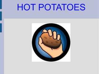 Hot Potatoes es una herramienta que permite crear diversos tipos de ejercicios interactivos multimedia como rellenar huecos, relacionar conceptos, contestar preguntas, crucigramas y ordenar elementos, los cuales pueden publicarse en un servidor web y compartirse a través de Internet.