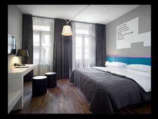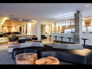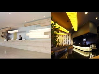 El documento habla sobre un hotel boutique y sus diferentes áreas como recepciones, bar y baños.