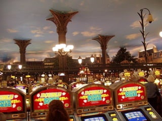 Los hoteles-casino de Las Vegas recrean temáticas a través de su decoración y ambiente, como el Hotel Bellagio que se inspira en el Lago Como de Italia, con fuentes bailarinas y un jardín botánico estacional; el Hotel París que replica la Torre Eiffel y lugares parisinos; y el Caesars Palace con temática del Imperio Romano y sus cinco torres.