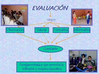 Este documento presenta un proyecto de evaluación educativa. Brevemente describe los objetivos generales y específicos del proyecto, y ofrece una introducción al tema de la evaluación. Además, incluye una sección de marco teórico que revisa conceptos y modelos clave de evaluación a lo largo de la historia, y una conclusión que resume que la evaluación educativa consiste en realizar juicios sobre el progreso de los estudiantes utilizando diferentes tipos de pruebas y enfoques.