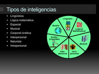Howard Gardner propuso la teoría de las inteligencias múltiples, la cual sostiene que la inteligencia no es unitaria sino que está compuesta por distintas capacidades específicas como la lingüística, lógico-matemática, espacial, musical, corporal-cinética, interpersonal, naturalista e intrapersonal.