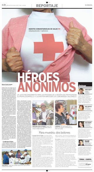 El documento destaca el papel fundamental de los agentes comunitarios de salud en la promoción y defensa del derecho a la salud dentro de sus comunidades en la región de La Libertad, Perú. Estos individuos, a menudo invisibilizados, realizan una labor crucial enfrentando la falta de recursos y condiciones de salud adversas, actuando como verdaderos 'héroes anónimos'. Se enfatiza la importancia de la participación ciudadana para lograr un desarrollo humano integral y saludable.