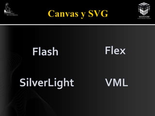 El documento describe la evolución de HTML5, incluyendo nuevos elementos como video, audio, canvas y geolocalización. También cubre tecnologías como CSS3, SVG, WebGL y trabajadores web que permiten crear aplicaciones web más ricas e interactivas.