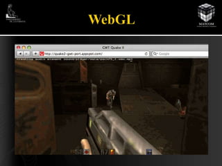En la figura se muestra una instancia del Quake II subido por Google creado en Javascript a través de WebGL