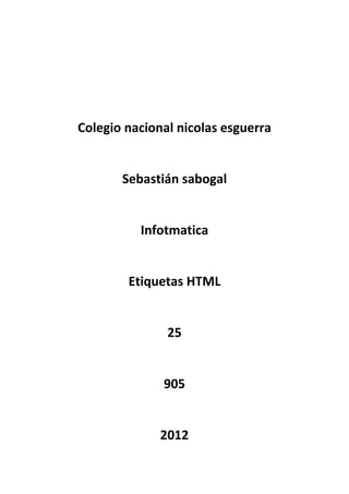 Este documento presenta la estructura básica de un documento HTML, incluyendo las etiquetas <head>, <title>, <body> y sus subelementos, así como una breve descripción de cada una. Proporciona información sobre los elementos fundamentales para crear la estructura de una página web.