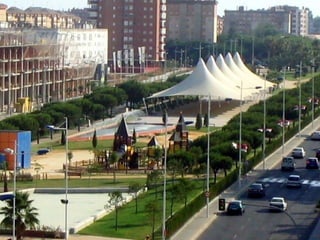 Este documento presenta la letra del Himno de Huelva. El himno describe la ciudad de Huelva y su historia, haciendo referencia a los ríos Tinto y Odiel, las tres carabelas de Colón, y lugares emblemáticos de la ciudad como La Merced, el Malecón y La Palmera. El himno expresa el orgullo y cariño por la ciudad de Huelva.