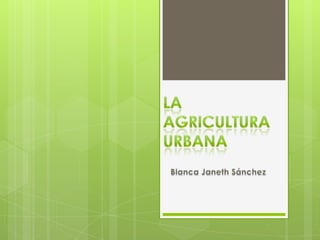La agricultura urbana se refiere a la práctica de cultivar alimentos y criar animales en áreas urbanas, contribuyendo a la soberanía alimentaria y a la sostenibilidad ambiental. Se pueden aprovechar espacios como balcones y techos para la producción de diversas especies vegetales, lo que también promueve el bienestar comunitario y el consumo de alimentos frescos. Idealmente, las huertas deben ser gestionadas adecuadamente utilizando técnicas como el compostaje y selección de abonos, adaptando el cultivo a las condiciones locales.