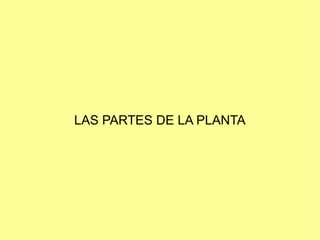 Las principales partes de las plantas son la raíz, el tallo y las hojas. La raíz sujeta la planta y absorbe agua y minerales del suelo. El tallo sostiene las hojas, flores y frutos, y transporta la savia. Las hojas realizan la fotosíntesis, respiración y transpiración. Las flores contienen partes como el cáliz, la corola, los estambres y los pistilos, y sirven para la reproducción. El fruto se forma a partir del ovario fecundado.